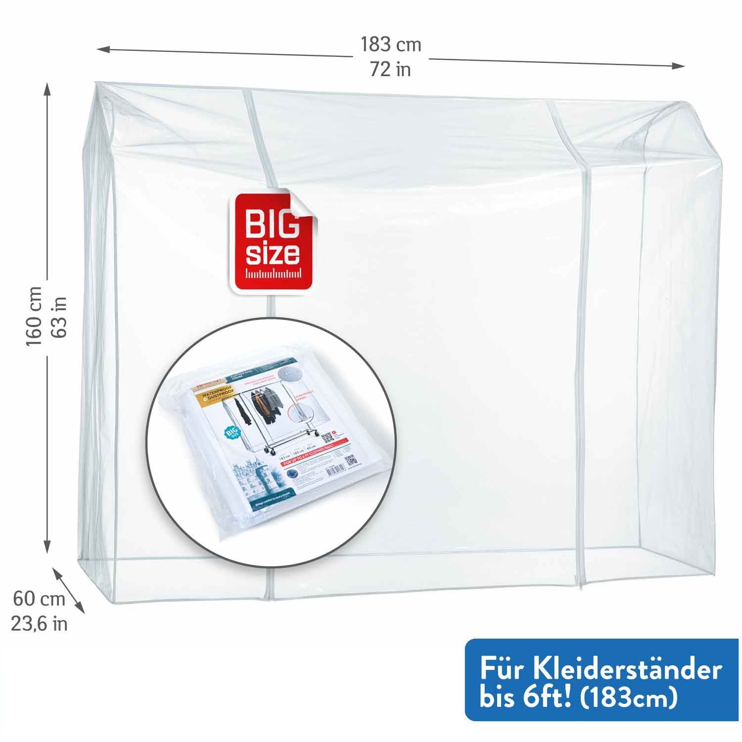 Tatkraft BIG - Kleiderständer Abdeckung, Schutzhülle für Kleiderständer, Abdeckung für Kleiderständer, Transparent, 2 Reissverschlüsse, 183x60x160 CM