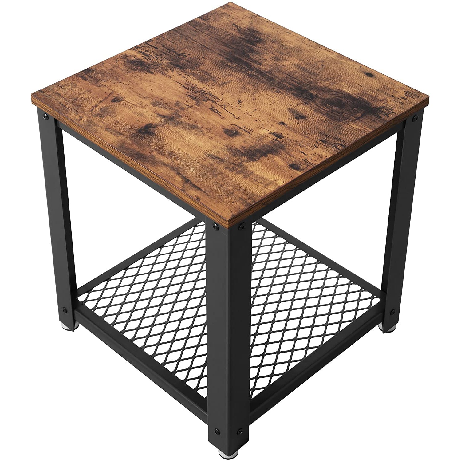 Vasagle - Beistelltisch, Nachttisch im Industrie-Design, Sofatisch mit Gitterablage, Stabil, mit Metallgestell, Einfach zu Montieren