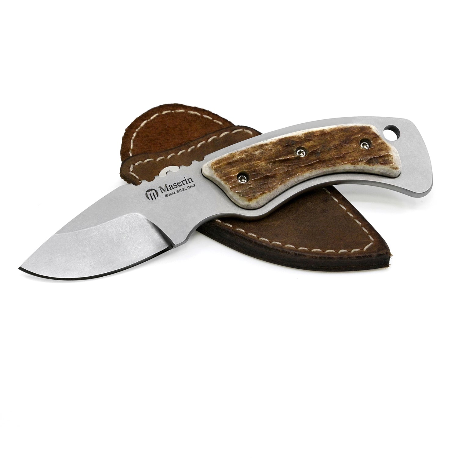 Maserin - Mini Trapper mit Hirschhorngriff, mit Schutzhülle Braunes Leder mit Knopf