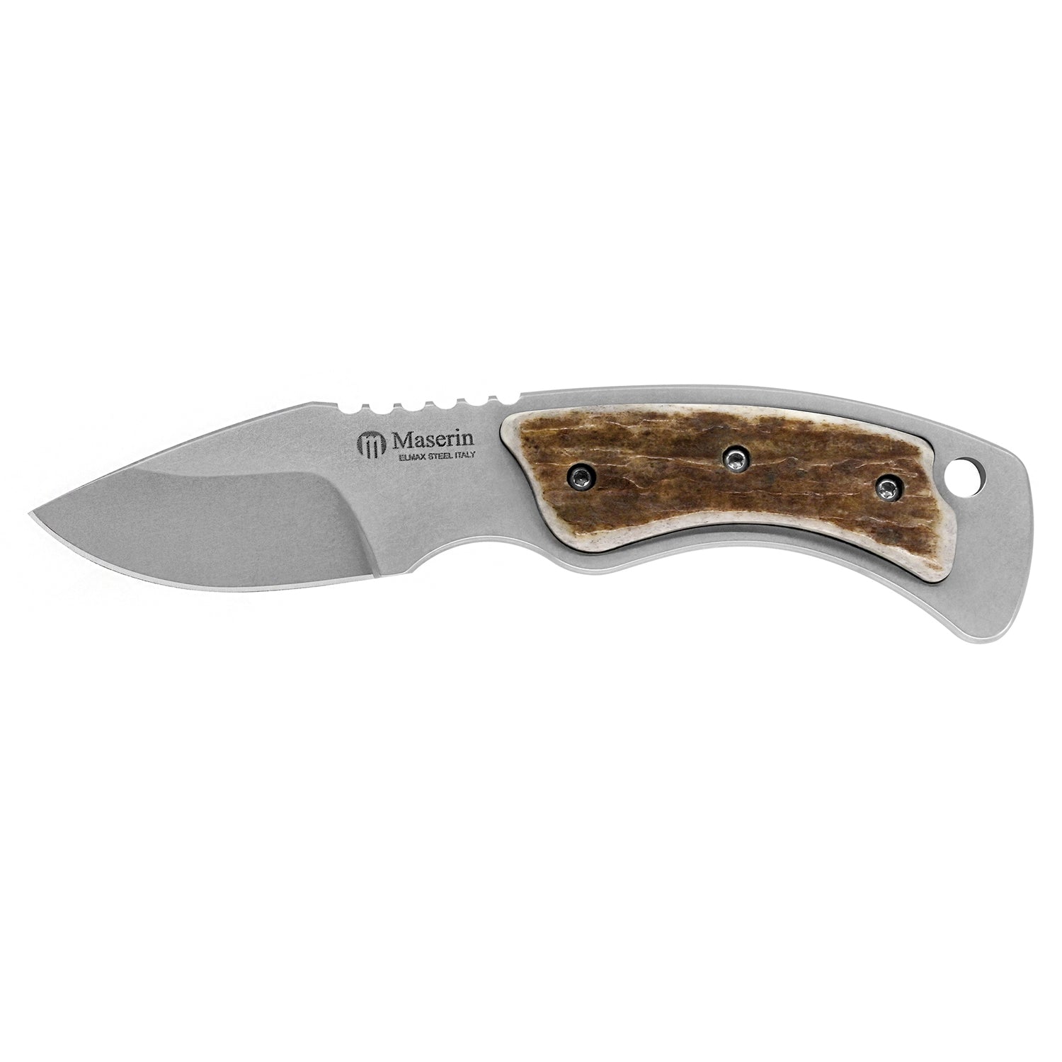 Mini-Trapper ist ein Outdoormesser mit feststehender Klinge, das sich dank seiner geringen Größe bei Ausflügen bequem in der Tasche tragen lässt. Es besteht aus Elmax HRC 61-Stahl, ist äußerst widerstandsfähig und für alle Anwendungen geeignet, auch zum Ausnehmen kleiner Beutetiere. Die Rille auf der Rückseite der Klinge dient als Griff für den Daumen und ermöglicht eine sichere Führung des Messers. Mini-Trapper hat eine Monoblockstruktur, in der Hirschhornschilde mit Stahlschrauben befestigt sind. Wird mit Lederscheide geliefert.