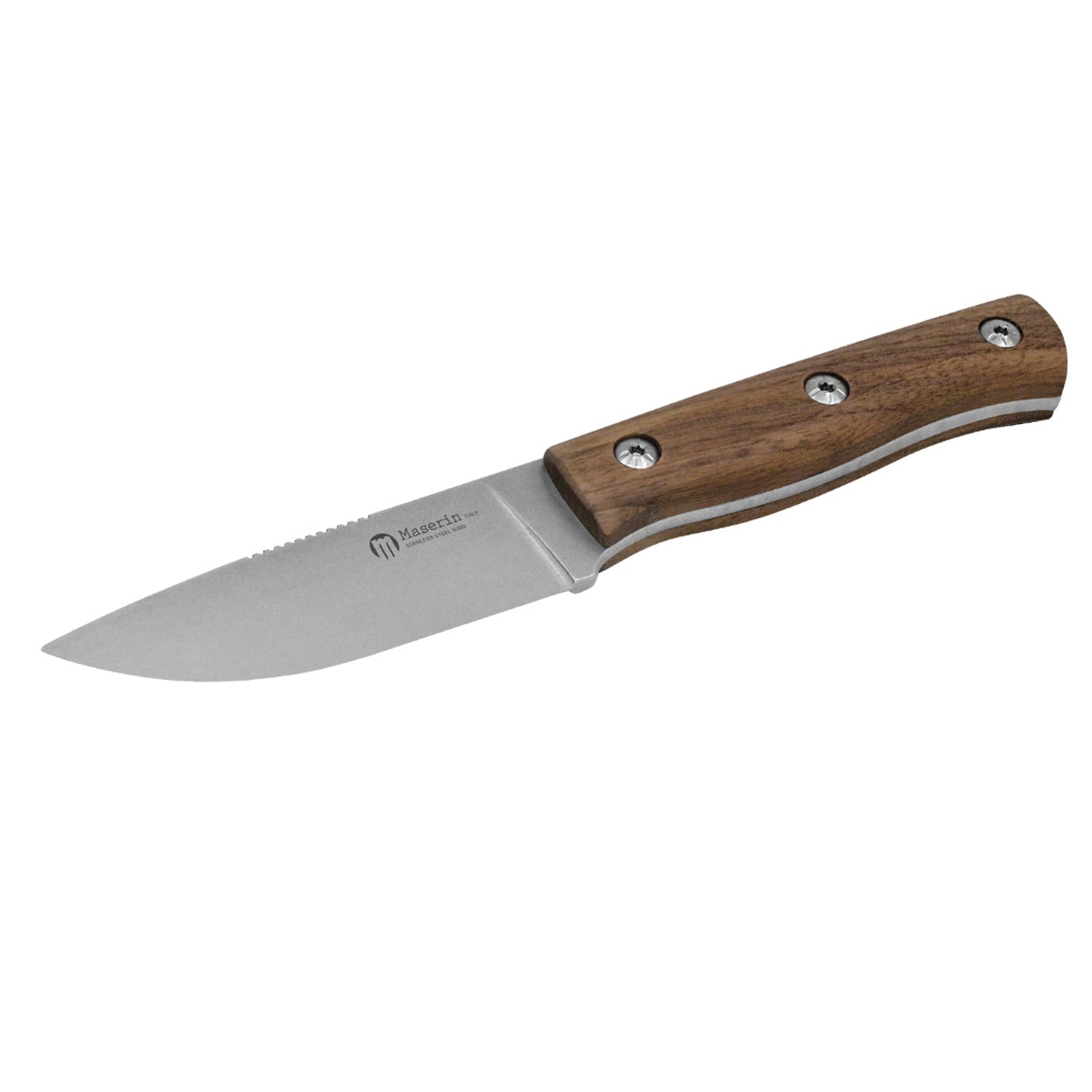 Maserin - Path mit Drop-Point-Klinge und Denim-Walnut-Holzgriff, mit Schutzhülle Schwarzes Leder mit Magnet
