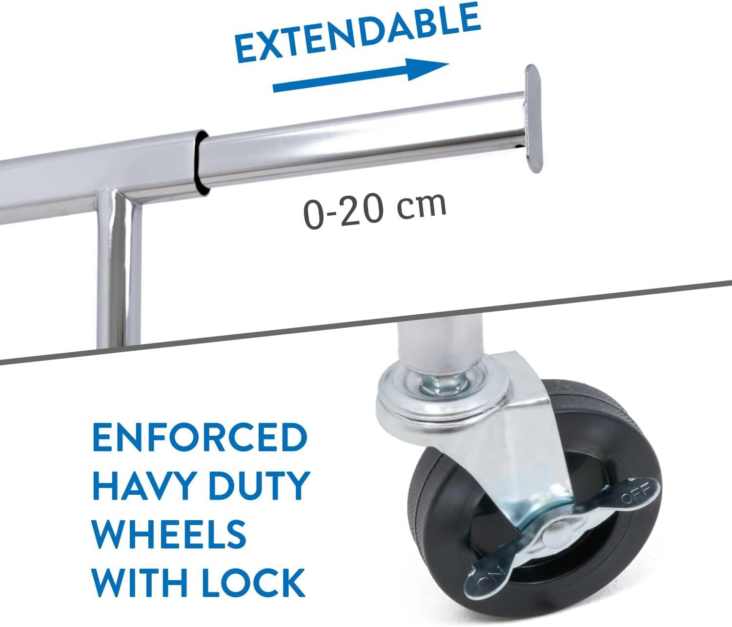 Tatkraft Didrik Schwerlast Kleiderständer auf Rädern, bis 130 Kg belastbar, ausziehbare Kleiderstange zum Aufhängen von Kleidung, Verchromt Stahl